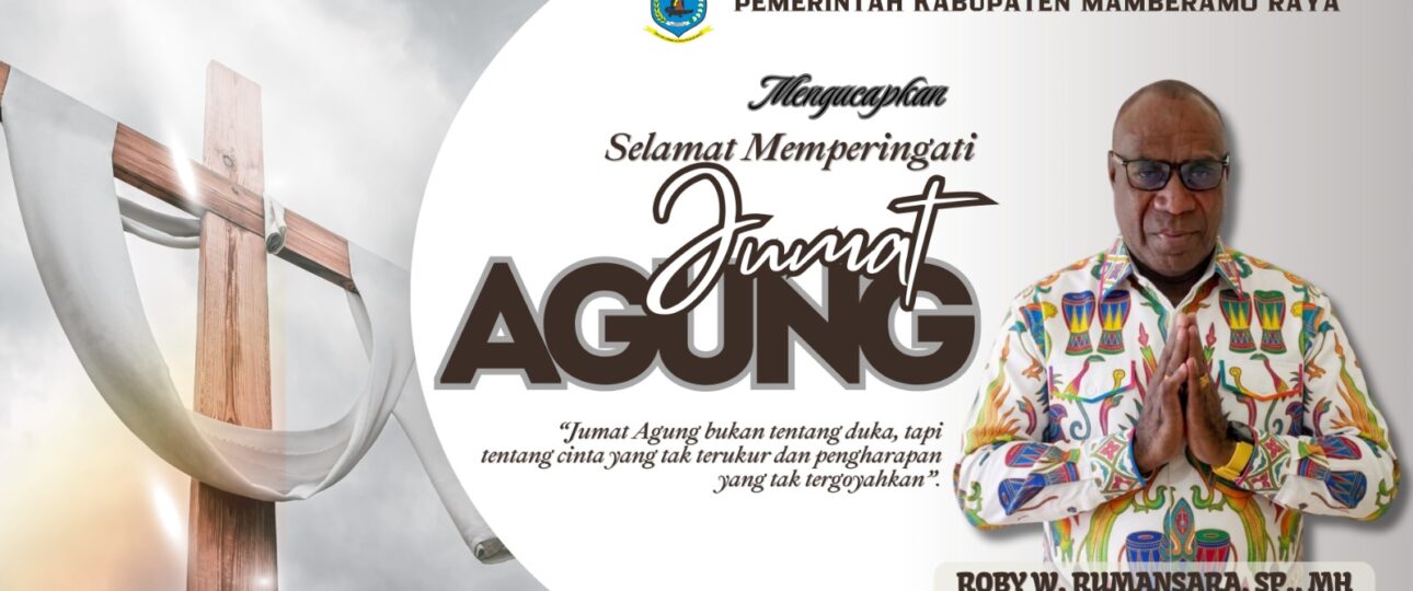 Pimpinan dan Staf Sekretariat Daerah Kabupaten Mamberamo Raya Mengucapkan: Selamat Memperingati Jumat Agung “Kiranya kasih Tuhan yang dinyatakan melalui pengorbanan-Nya menuntun hidup kita dalam iman dan pengharapan”